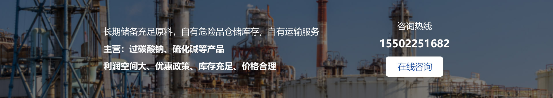 我公司自有危險品儲存倉庫,自有的運輸隊伍和三位一體的運營模式,使我公司在市場中有著廣闊的發展前景和拓展空間。我廠生產及代理產品主要有:五水偏硅酸鈉、聚丙烯酰胺、硫化鈉、活性炭、磷酸三鈉、純堿等......